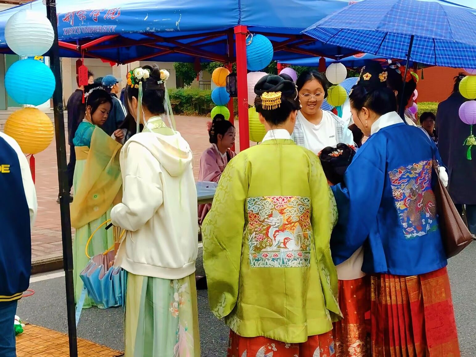 本次活动邀请了十几位历届汉服社前辈返校共庆。多位已毕业的学长学姐特地从各地赶来,见证这一重要时刻。活动中,汉服社创社前辈发言中说到:“我看着汉服社从最初的几人发展到如今的大家庭,看到汉服文化从少数人的爱好成为校园一抹亮丽的色彩,深感自豪。”