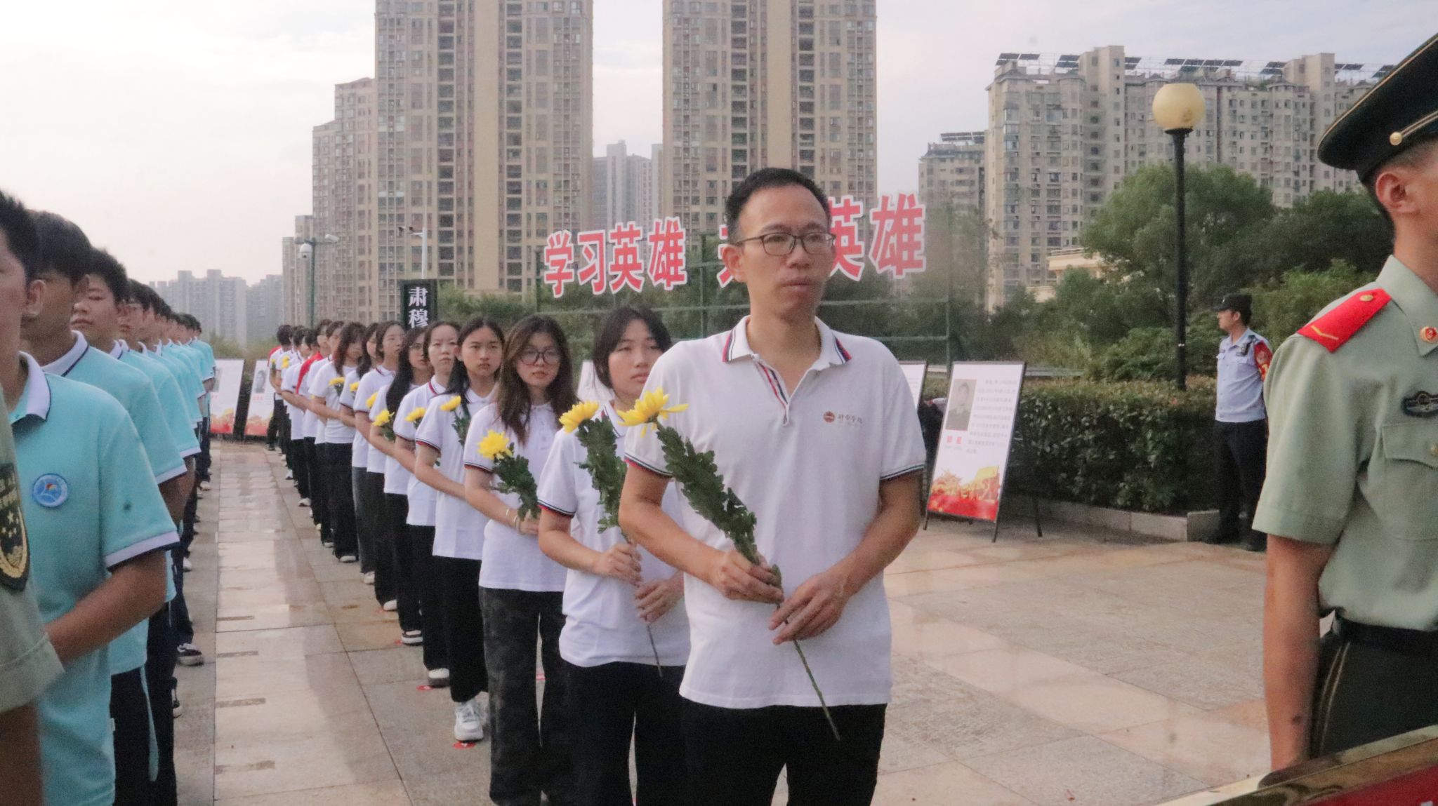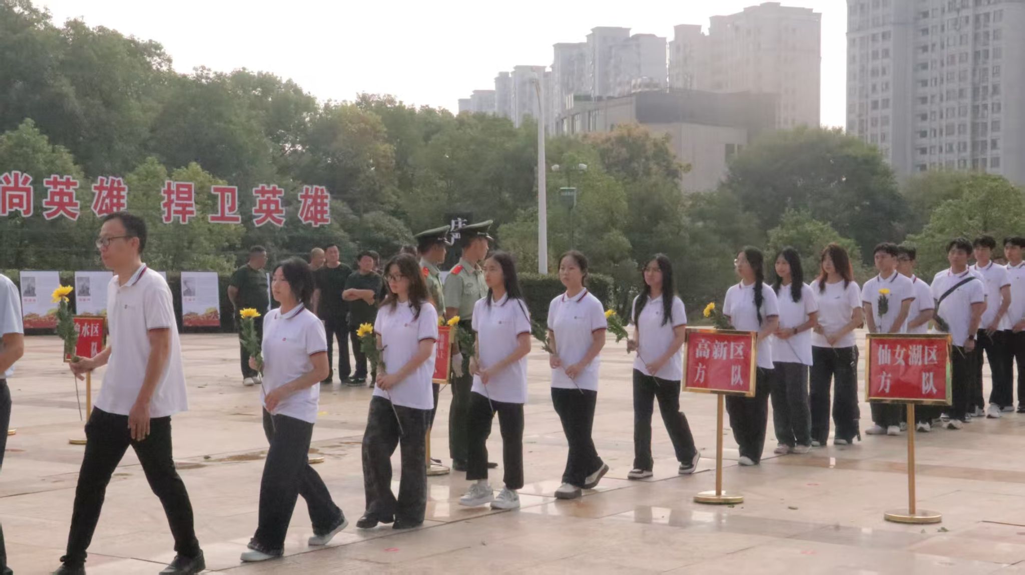 默哀结束后,师生代表缓步上前,向烈士纪念碑敬献鲜花。一束束黄菊,寄托着绵绵哀思;一次次鞠躬,凝结着崇高敬意。大家依次瞻仰纪念碑与烈士英名墙,认真聆听讲解员讲述1926年北伐战争中革命先烈浴血奋战的英雄事迹。那段峥嵘岁月,让在场师生无不动容,深刻体会到今日幸福生活的来之不易。