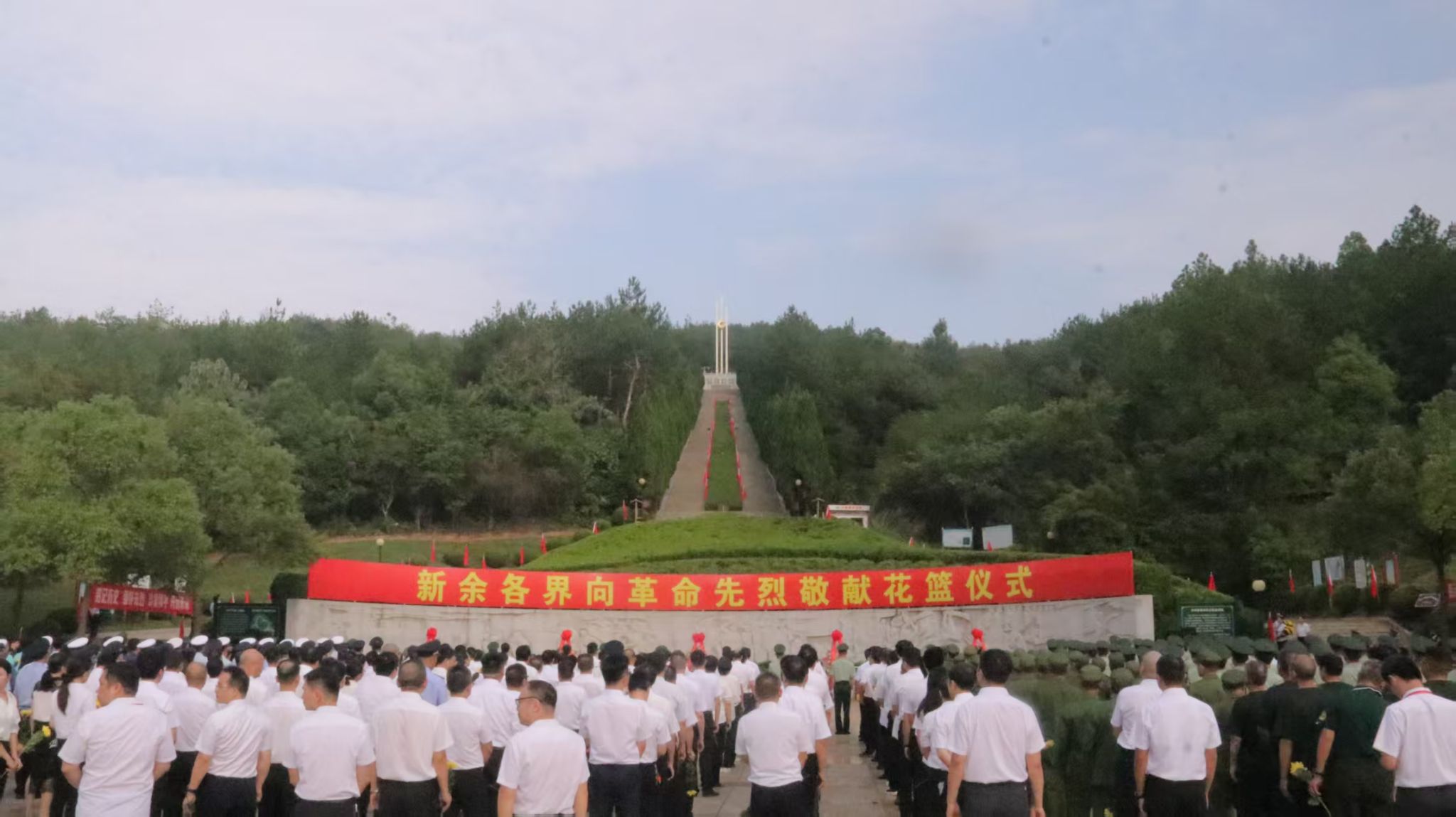 仪式在雄壮的《中华人民共和国国歌》声中开始,激昂的旋律在山间回荡,仿佛唤醒了那段烽火连天的革命岁月。国歌奏毕,全场肃立默哀,深切悼念为民族独立、人民解放和国家富强英勇献身的革命先烈。